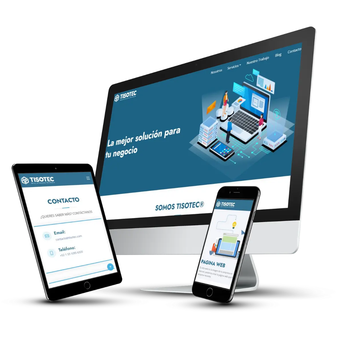 En TISOTEC creamos sitios web profesionales que se adaptan a todos los dispositivos, con diseño moderno, navegación intuitiva y optimización para atraer más clientes.